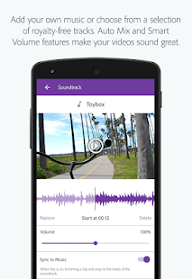 Save finished videos to your gallery, share directly to Twitter, Facebook or YouTube, or send them to Premiere Pro CC for additional editing.